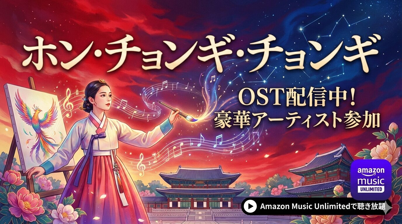 「ドラマ自体はまあまあだったけど、OSTはめちゃくちゃ良かった」という海外ファンの声が象徴するように、音楽単体としてのクオリティも非常に高い作品です。Amazon Music Unlimitedなら、ボーカル8曲にインストゥルメンタルを加えた全45曲をまとめて聴き放題。初回30日間の無料体験を活用して、ぜひ「ホン・チョンギ」の音楽世界に浸ってみてください。