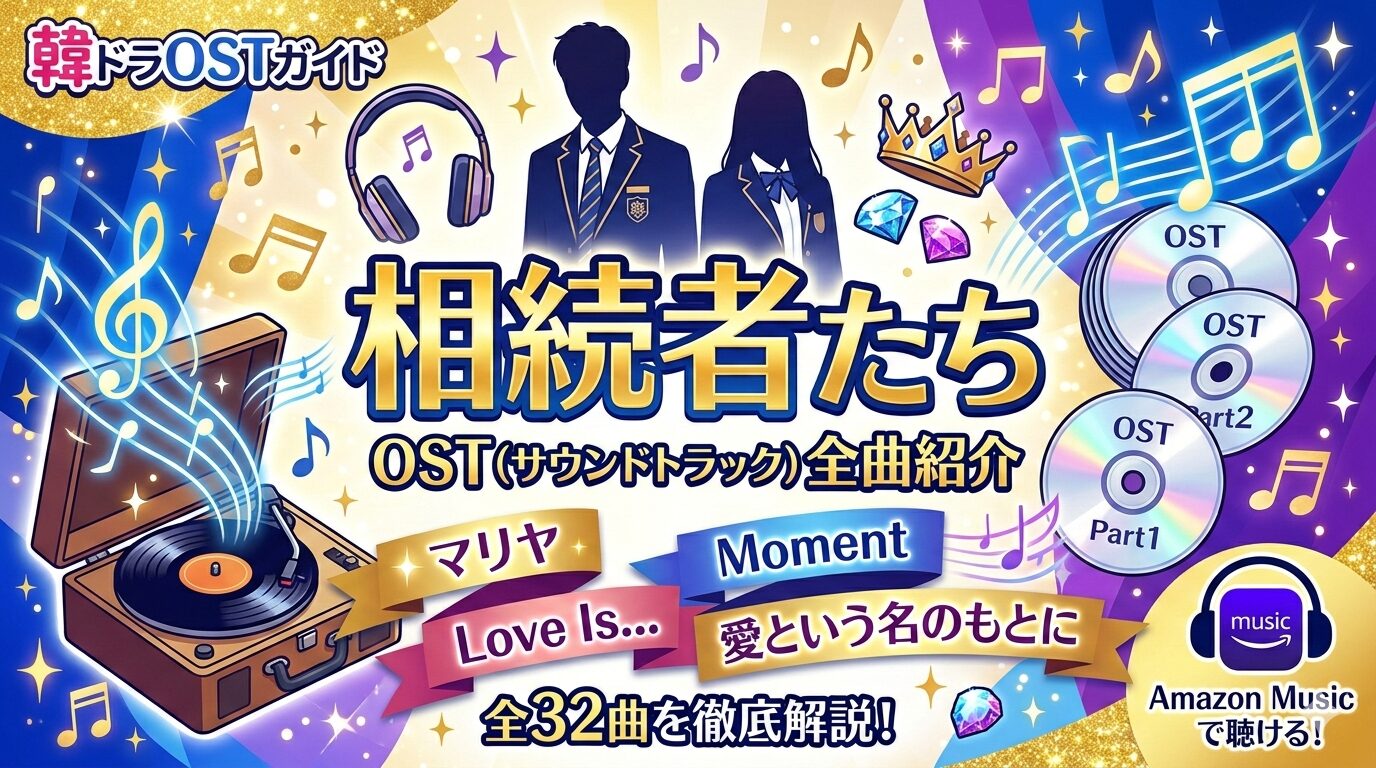 韓国ドラマ「相続者たち」のOST(サウンドトラック)は、イ・ホンギの「マリヤ」やイ・チャンミンの「Moment」をはじめ、バラードの名曲が揃った珠玉のアルバムです。この記事では、Part1・Part2の全32曲を一覧で紹介し、各曲の聴きどころやドラマでの使用場面、さらにAmazon Music Unlimitedでの配信・CD購入情報まで徹底的にまとめました。